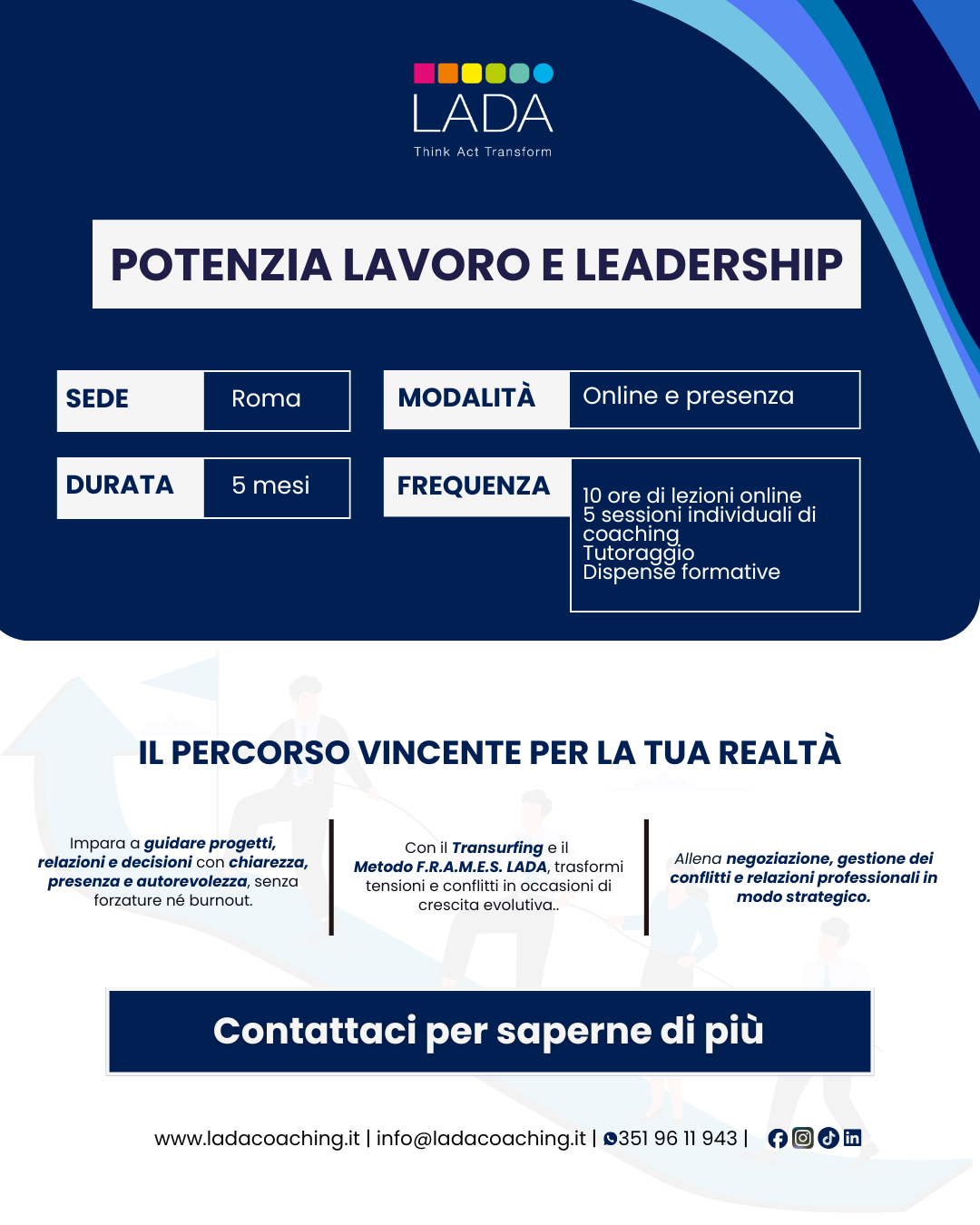 È un corso di coaching avanzato che integra Transurfing e Metodo F.R.A.M.E.S. di LADA Coaching per aiutarti a trasformare il tuo modo di stare nel lavoro, prima ancora delle condizioni esterne.